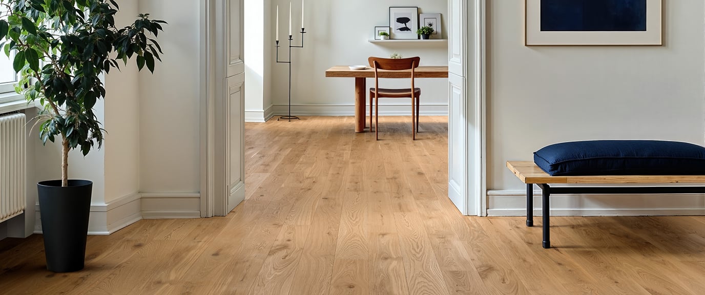 - Einzigartige Optik: Jede Diele zeigt die natürliche Maserung des Holzes – ohne künstliche Dekore oder sich wiederholende Muster.
